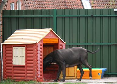wieder intensiv gebuddelt wird. .... das Zukünftige Welpenspielhaus wird schon einmal genau inspiziert. |