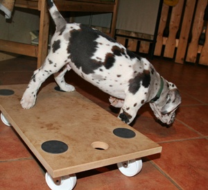 16.12.13 Tag 40 Heute gab es mal wieder ein neues Spielgerät :-) Alle waren ganz mutig und haben das Rollbrett ausprobiert.