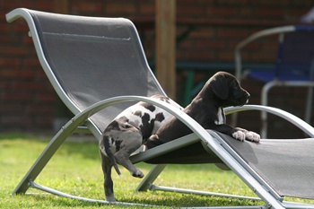 40 Die Kleine Rasselbande, erobert von Tag zu Tag immer mehr bei uns im Garten, heute der Liegestuhl :-) |