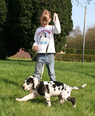 • Prägung auf den Menschen Die positive Einstellung auf das Abbild des Menschen ist eine der wichtigsten Leistungen, die der Züchter für die Welpen und künftigen Welpenerwerber erbringen muß. Hier gibt es bei unseren Doggen eigentlich nie Defizite, sie lieben die Menschen. praktische
