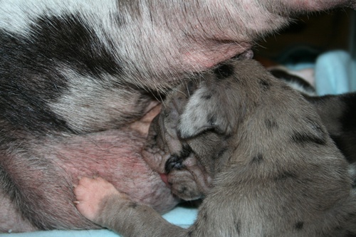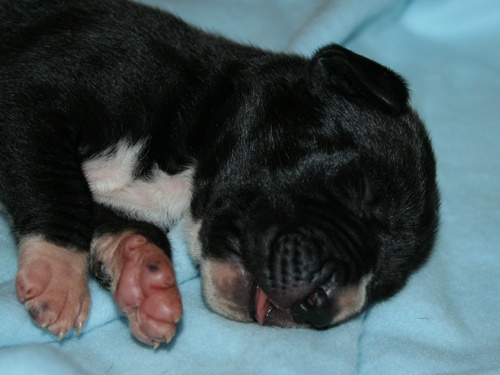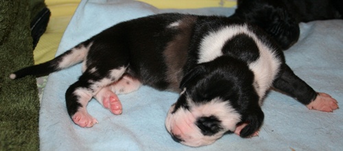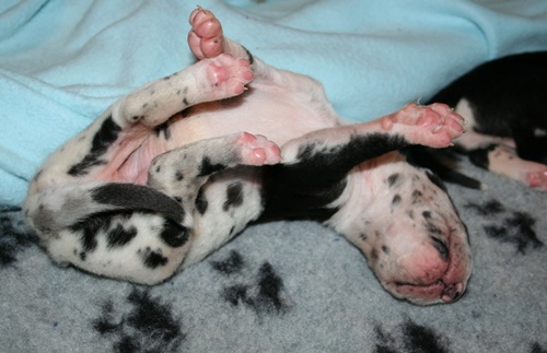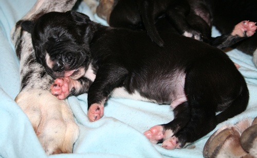 gefleckter Rüde Nr. 9 erst einmal richtig recken und.... ... strecken :-) ... danach wieder weiterschlafen :-) Grautiger Rüde Nr. 7 schwarze Hündin Nr. 4 schwarzer Rüde Nr. 1 |