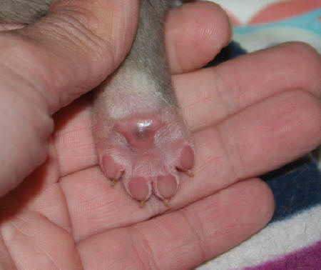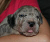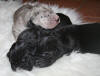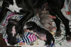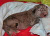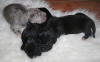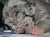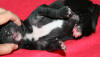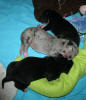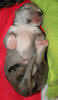 Graugefleckte Hündin weiße Brust und weiße Pfoten Gewicht: 1180g Rüde schwarz viel weiß an der Brust bis zum Bauchnabel, viel weiß an den Pfoten und weißer Nasenstrich Gewicht: 1110g Rüde schwarz weiße Brust bis Mitte Bauch, drei weiße Zehenspitzen vorne und weiße Pfoten hinten Gewicht: 1100g |