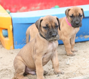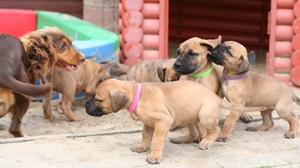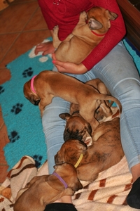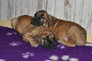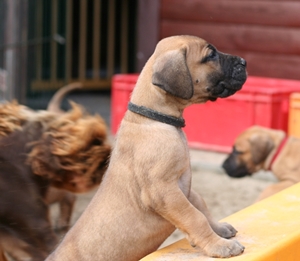 schlafen sie jedoch nun zusammen mit Mama Kyana im Welpenhaus.
